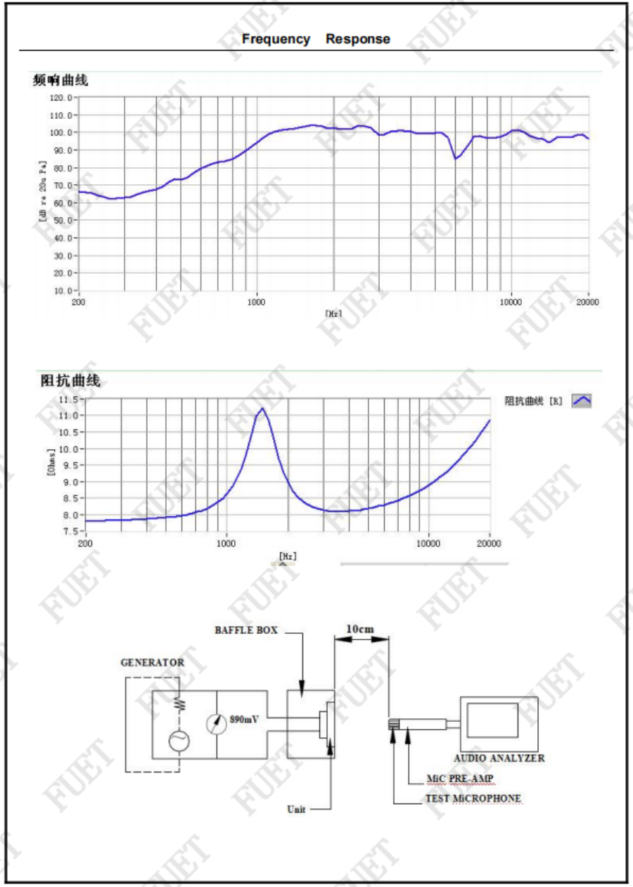 | 最低共振周波數(shù) | Fo:1700Hz±20% | Without Baffle |